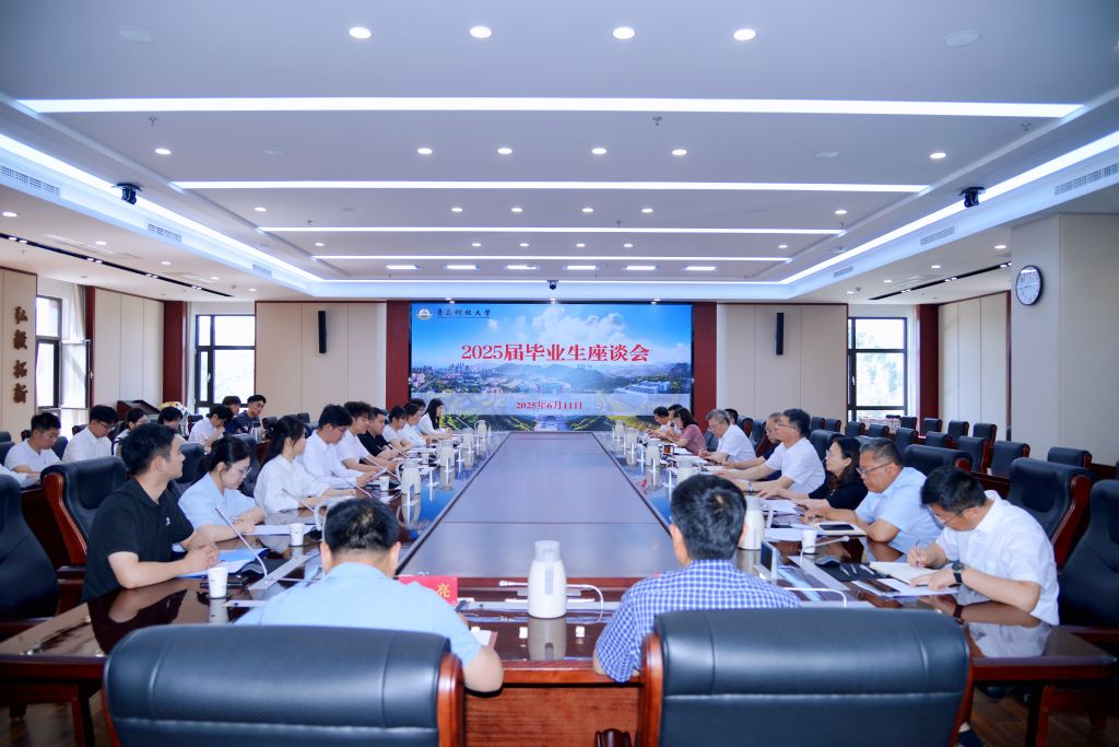 6月11日上午,学校在崂山校区赛轮会议室召开2025届毕业生座谈会。党委书记杨天梅,党委常委、副校长丁林,党委常委、组织部部长朱敬义出席会议。