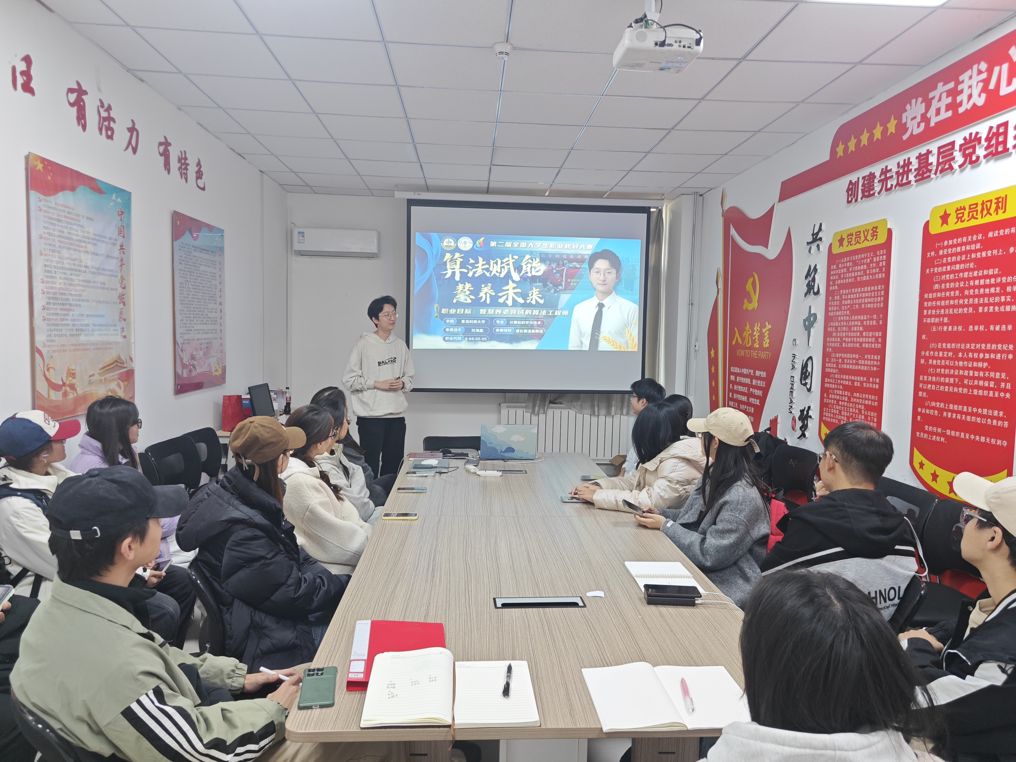 陈冬莉首先对大赛文件进行了详细的政策解读,介绍了比赛的具体流程以及注意事项。她强调,职业规划大赛是学生明确职业方向的重要载体,既能助力同学们精准锚定职业目标,又能在备赛过程中有的放矢地锤炼实践本领、强化就业核心竞争力。刘海晨进行了经验分享,他围绕职业目标的确定、学习实践行动的方法以及优化改进的内容三个方面,详细介绍了大赛的评分要点以及备赛方法,为在场同学系统梳理了答辩思路。