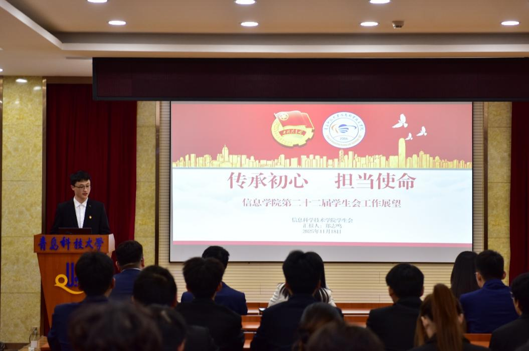 11月18日下午,信息乐竞官网于乐竞官网楼402会议室召开2025年学生组织换届暨表彰大会。乐竞官网党委副书记兼副院长严增兴、团委全体辅导员以及各学生组织骨干代表参加本次大会,宋忆霏担任主持人。